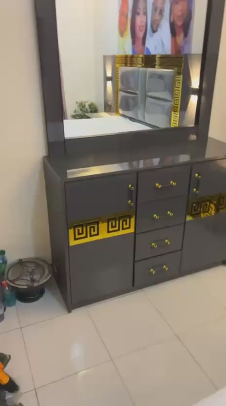 La Chambre à Coucher Gris, délicatement ornée de nuances dorées, évoque une atmosphère de sérénité et de raffinement. Chaque détail de cet espace élégant transcende la simple fonctionnalité, invitant à une expérience nocturne empreinte de luxe et de douceur, où chaque nuit se transforme en un poème.